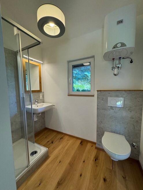 - Warmwasser (Boiler), Strom (auch für Beheizung) und Kanalanschluss