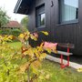 Der Eingangsbereich vor dem Haus wurde mit Holzplanken sauber ausgelegt, so dass eine gemütliche Holz-Terrasse den südwestlichen ans Haus angeschlossen und uneinsichtig.