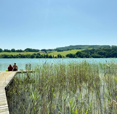 Zwei gepflegte Seezugänge mit Steg und Liegeflächen stehen zur Mitbenutzung bereit – ideal für entspannte Stunden am Wasser.